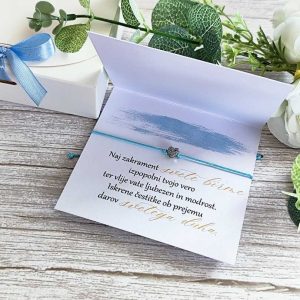 Naroči svojo personalizirano kartico z zapestnico s klekljanim srčkom še danes in poskrbi, da bo birma ostala zapisana v vajinih srcih z najlepšimi spomini.
