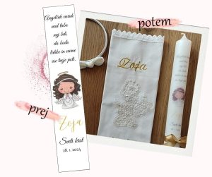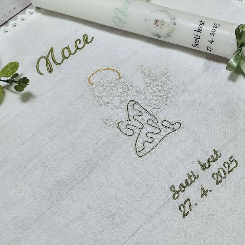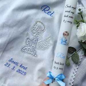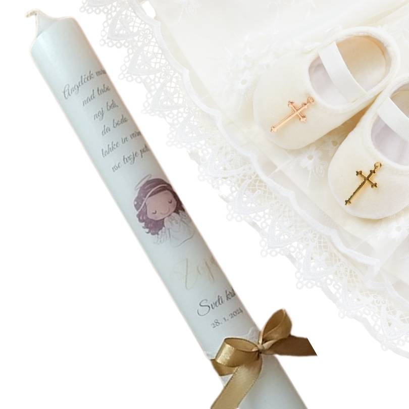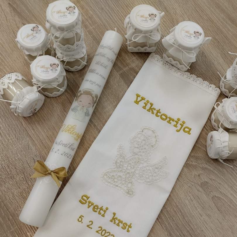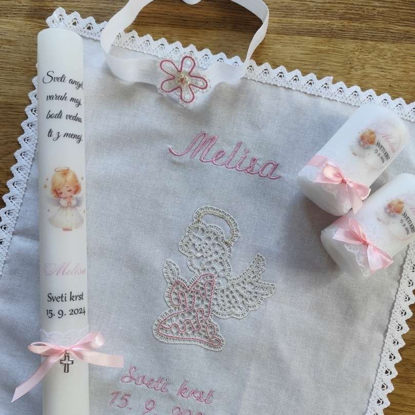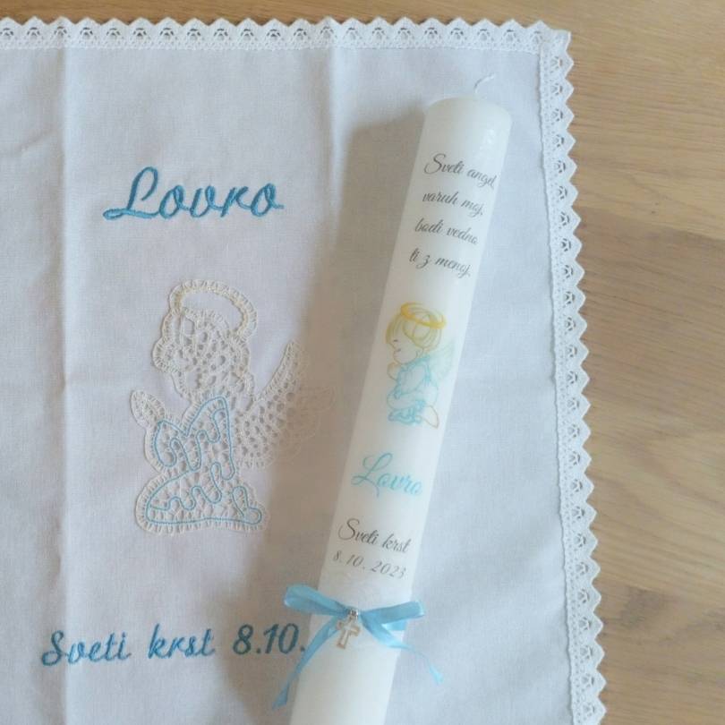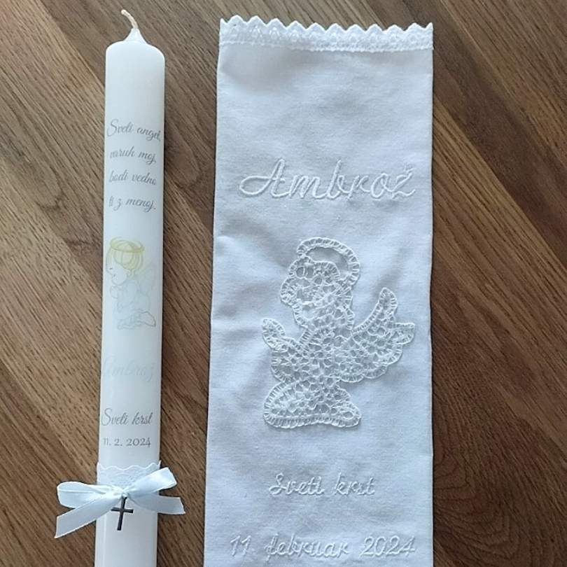 Poleg krstne sveče lahko naročiš tudi krstni prtiček ali pa kar krstni komplet sveče in prtička