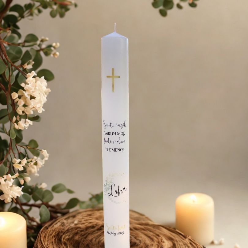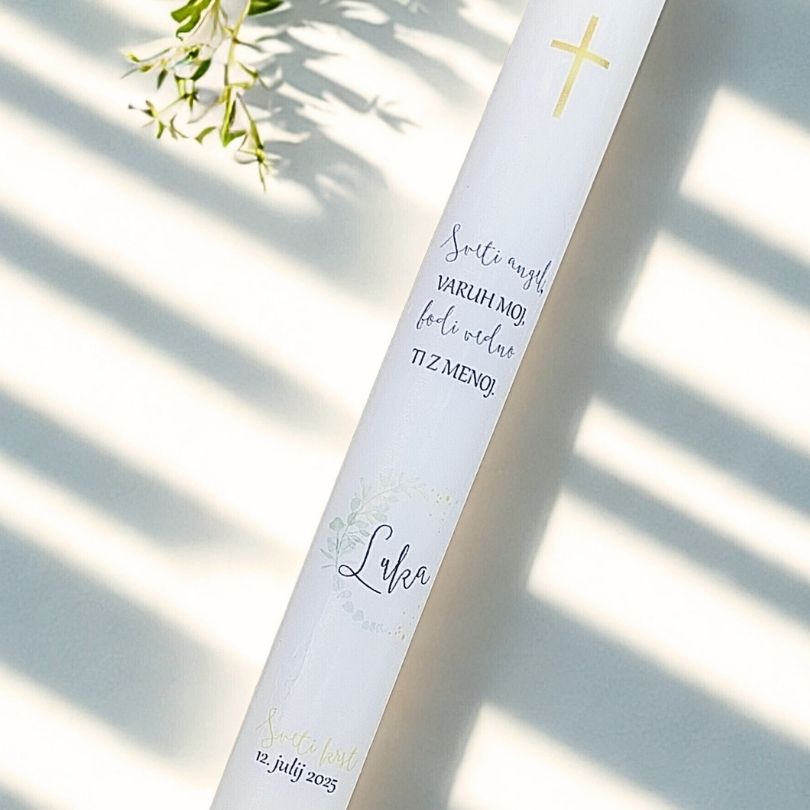 Motiv na izbrani krstni sveči – Klasična ozka krstna sveča Evkaliptus: