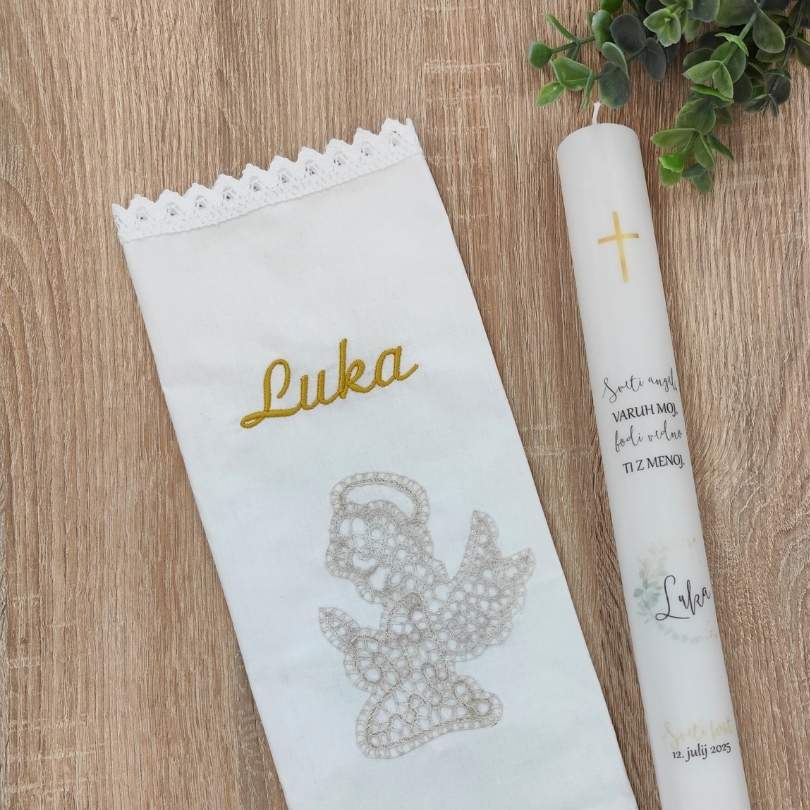 Poleg krstne sveče lahko naročiš tudi krstni prtiček ali pa kar celoten krstni komplet sveče in prtička