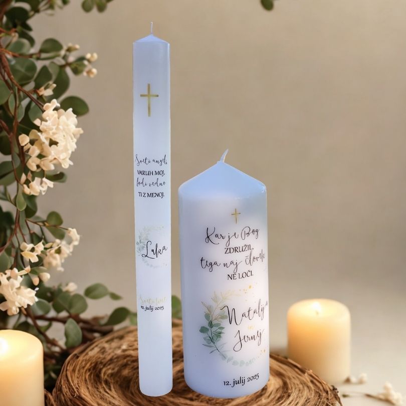 Krstna sveča je v življenju krščenca lep spomin na prejem zakramenta svetega krsta, zato se potrudimo, da je pravi unikatni izdelek, izdelan v skladu s tvojimi željami.