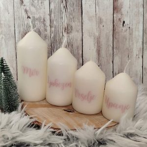 Komplet 4 unikatnih adventnih svečk (različne velikosti) z napisi