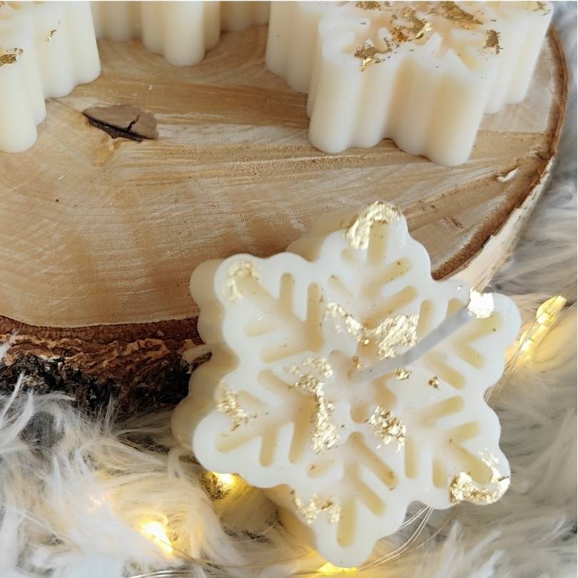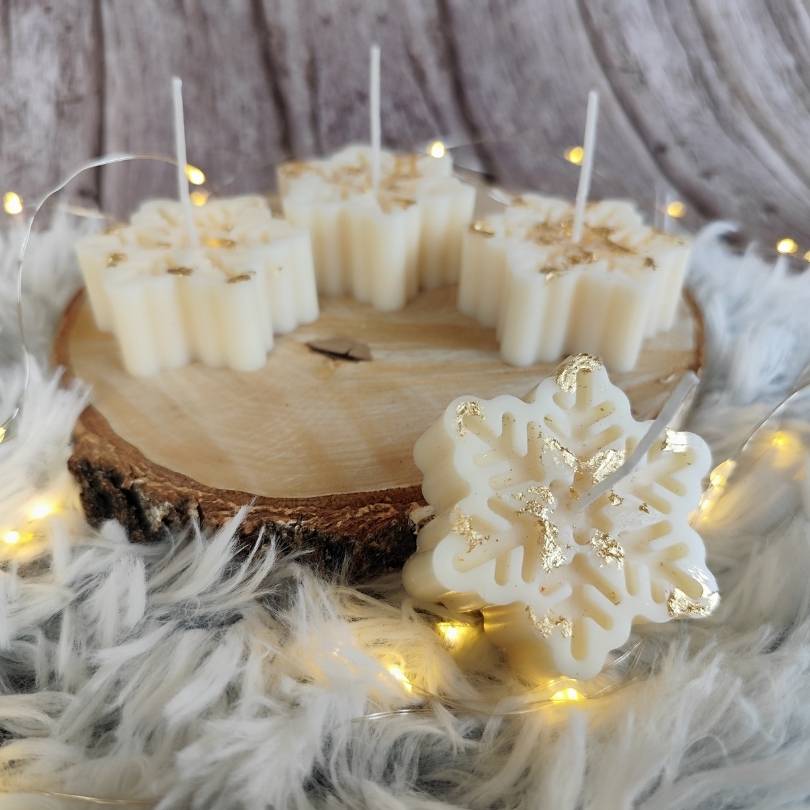 ✨ Ročno izdelane svečke v obliki snežinke z lesketajočimi zlatimi lističi ✨