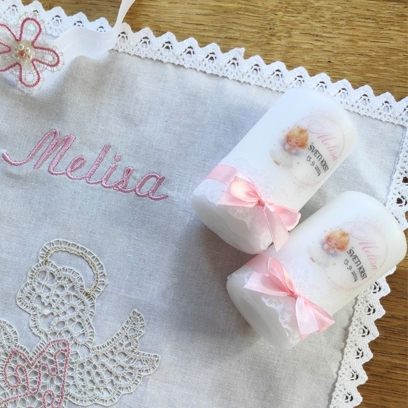 Zahvalna svečka za botra/botro je pomanjšana verzija krstne sveče – motiv in ime na krstni sveči prilagodim in ga uporabim na zahvalni svečki.